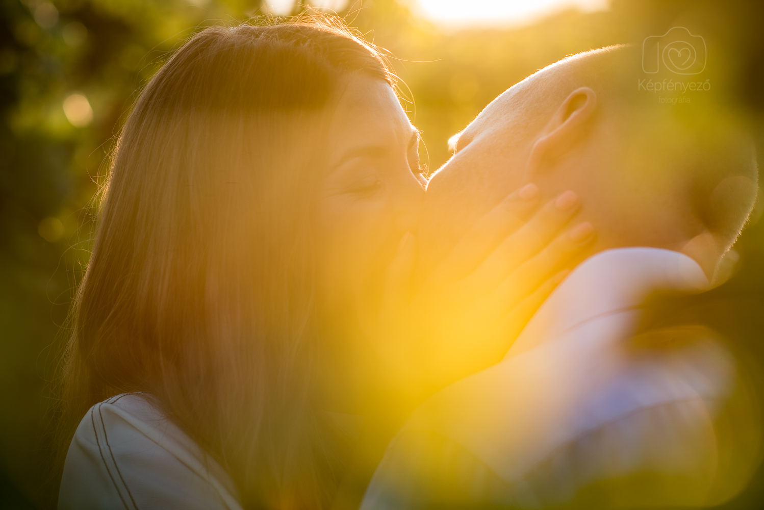 Nekünk, fotósoknak jó dolgunk van: a hozzánk érkező embereket a legjobb pillanataikban látjuk, amikor egyszerűen jól esik rájuk nézni. Különösen igaz ez a párokra. Gyurit azonban még ehhez képest is külön köszönet illeti: ennyire jó hatással ritkán vannak azért emberek a párjukra. Fotózás közben általában megkeresem először azt a helyzetet, ahol a fény és a háttér, illetve úgy általában a kompozíció stimmel, és utána várok (esetleg óvatosan irányítgatok), amíg élet költözik a tekintetekbe, az arcokra, és összeáll a pillanat. Ez a “várakozás” most kimaradt: elég volt Gyurit Saci látóterébe hozni, és az arc életre kelt, megszépült… bárhol, bármikor. Ezt pedig mindenképp jó látni egy esküvő előtt; meg persze az én dolgomat is megkönnyíti. :)