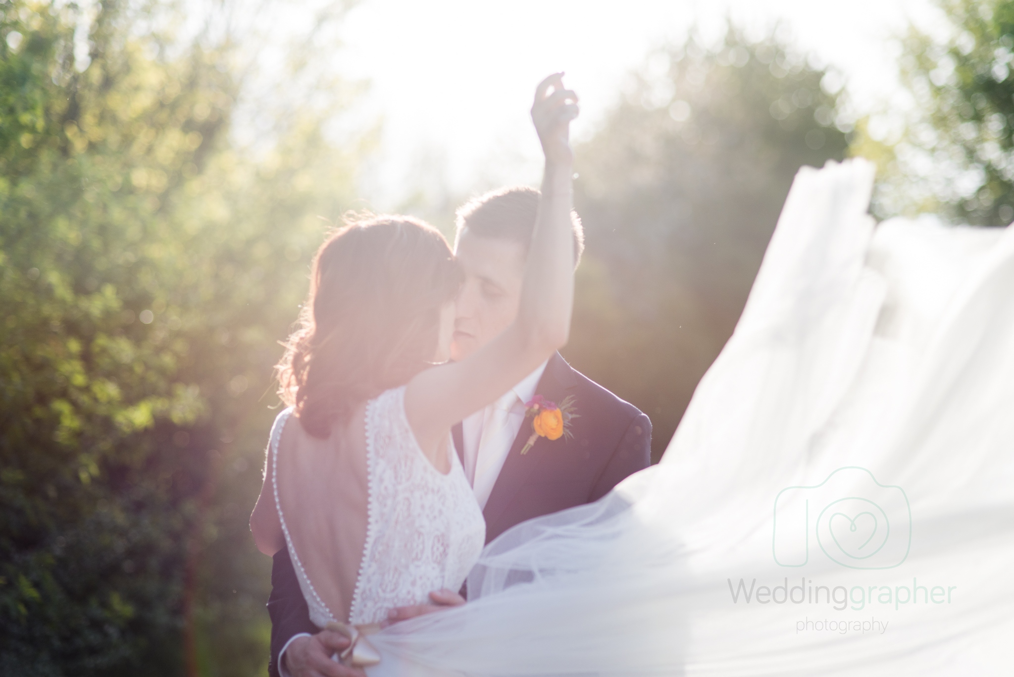 Nem tudom pontosan megmagyarázni, hogy történik ez – de vannak párok, akikkel valahogy minden különösebb igyekezet nélkül, rögtön egy hullámhosszra kerülünk. Ezt fotózás közben egyrészt onnan szoktam észrevenni, hogy nagyon jól érzem magam, másrészt árulkodó szokott lenni, hogy valahogy pont ugyanazoknak a képeknek örülünk. Így nem kell hosszan magyarázni, mit szeretnék én és mit szeretnének ők – mert pont ugyanazt, és szavak nélkül is működik. Ez Dóri és Peti esetén igazából már a Balaton-felvidéki jegyesfotózás elején megtörtént (az egyik legszebb idei képsorozatunkat köszönhetjük nekik!), és az esküvőn pont ezzel a jó érzéssel folytattuk. Keresgéltük a fényeket, háttereket, színeket – és ha megvolt, mielőtt bármit kértünk volna, már öröm volt rájuk pillantani. Több ez, mint kifinomultan szépnek, vagy megnyerően jó arcúnak lenni – mert sokkal fontosabb itt, hogy két ember hogy áll egymásnak. Ez esetben kétségkívül jól. :)