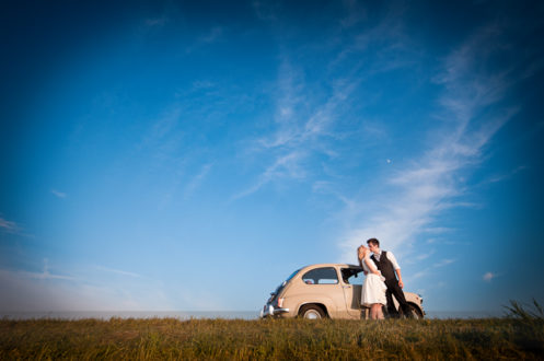 Hosszas tervezgetés, időjárás-figyelés és készülődés után összeállt a kép: volt napsütés, mező, pipacsok és egy szuper kis Fiat, néhány évtizeddel ezelőttről. No meg persze egy vőlegény és egy menyasszony, akikről eddig is tudtuk, hogy jól áll nekik a retró – most az is kiderült, hogy az oldtimer Fiat-ot pont nekik találták ki. :)