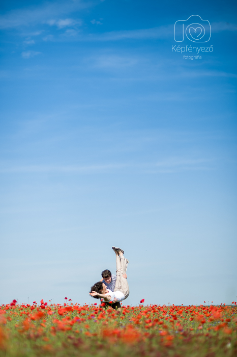 Másodszor: mindig nagyon szerettem a táncosokat és táncolni szerető párokat – ha egy jegyesfotózáson sikerül rábeszélni a párokat némi táncra, már boldog vagyok… de most igazán rábeszélni sem kellett. Csak megmutattuk a végtelen pipacsmezőt, és megemlítettük, hogy esetleg táncolhatnának is… és lám. :)