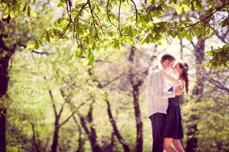 Roxival és Dáviddal amúgy öröm volt dolgozni, egyszerűen jól álltak egymásnak, egyszerűen szépen fordultak egymáshoz, néztek össze vagy ölelték meg egymást – és ilyenkor a fotósnak már nyert ügye van. Annak a fotósnak, akinek első hallásra nehéz dolga kellett legyen, mert a fotózás közepén a nyakunkba szakadt egy jóféle tavaszi zuhé – de ez valójában nagy ajándék volt. Először drámaian szép felhőkkel, aztán igazán romantikus esőben ölelkezéssel, majd az eső elvonulta után a párán át ismét kisütő napfénnyel. Ajánlom mindazok figyelmébe, akik a “jó idő” kifejezést a “négy napja felhőt sem láttunk” napsütéssel azonosítanák… szeressétek az esőt! :)