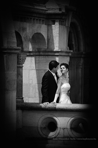 Viszonylag hosszan készültünk a fotózásra, nehéz volt elintézni, hogy az egész Várat zárják le nekünk a turisták elől; sokáig tartott az univerzális szélgép beszerzése – de végül csak összejött, amit elterveztünk. Színt vittünk a kövek közé, majd némi eleganciát csempésztünk a rózsabokrok és lépcsők világába. Remélhetőleg még a nászút előtt, épp időben, a csomagolás mellé útravalóul íme a diavetítés: rólatok-nektek, szeretettel! :)