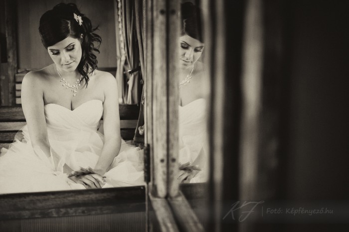 Magunk sem feltétlen tudjuk, hogyan történik, de vannak néha napok, amikor minden jól alakul, még azok a dolgok is, amire nem készülhettünk előre. És ez most egy ilyen esküvő volt, az elejétől kezdve: a készülődésre érkeztünk, egy első ránézésre szép, de nem túl különleges hotelszobába – ahol azután a nap iránya és az ablakok elhelyezkedése miatt egészen gyönyörű fényviszonyokkal találkoztunk. És persze meleg ide vagy oda, annak is volt valami sajátos hangulata, amint a násznéppel a füstös kis gőzösön átzötyögtünk a templomhoz – mégpedig az egyik legszebb református templomhoz, ahol eddig megfordultunk. Igazi ódon hangulatú hely volt (mintha Jókai Mórt is láttuk volna a karzaton); amit az ablakon beragyogó napfény egészen gyönyörűvé varázsolt.